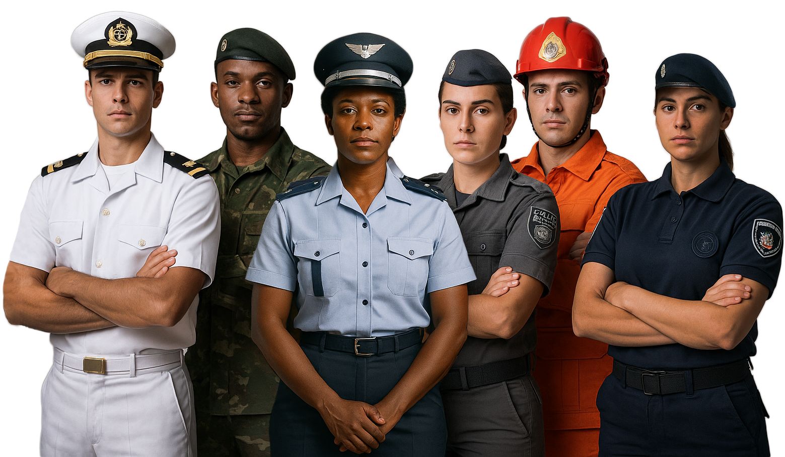 Preparação completa para os mais diversos concursos das Forças Armadas e Polícias Militares, focando nas especificidades de cada edital.